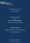 Am 15. Mai 2018 wird Herr Prof. Dr. Wolfgang Kofler (Leopold-Franzens-Universität Innsbruck) zu dem Thema „Wo bleibt Tacitus? Philologie und Politik in Gustav Freytags Roman ,Die verlorene Handschrift’“ sprechen. Der Vortrag wird um 14 Uhr c.t. im Kollegienhaus im Raum 1.016 (Universitätsstr. 15) stattfinden.